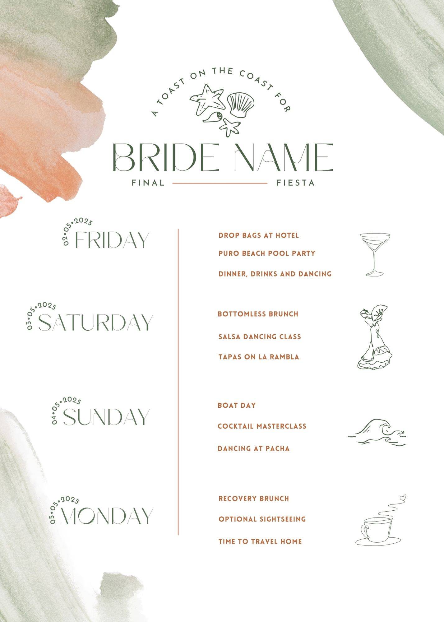 Edit and print your own Barcelona Hen Do/Bachelorette itinerary cards.